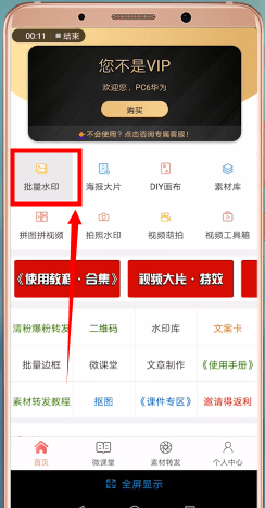 打开【微信商务水印相机】APP,点击【批量水印】进入手机相册。