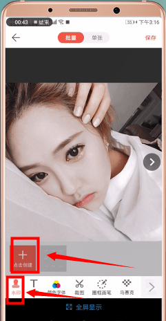 然后点击底部的【水印】-【点击创建】,选择您想要的水印创建方式。