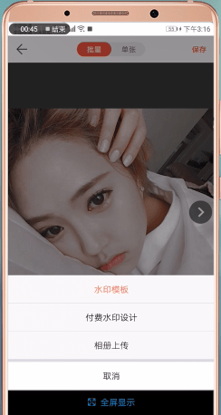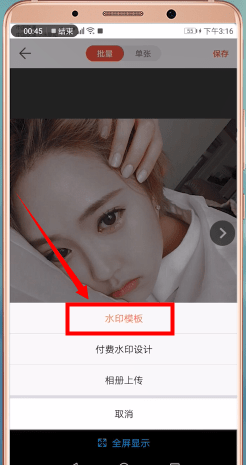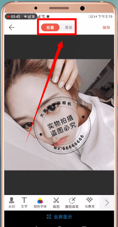 最后返回图片页面调整水印的形状和大小。您可以在顶部选择批量或单一模式。