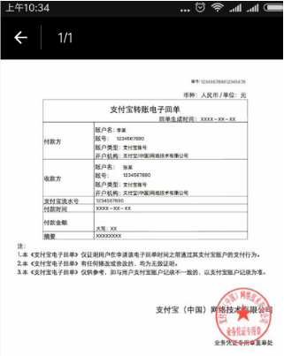 支付宝电子收据生成方法