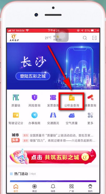 1.打开手机上的【爱城网】APP,首页会出现公积金查询按钮。我们点击【公积金查询】。