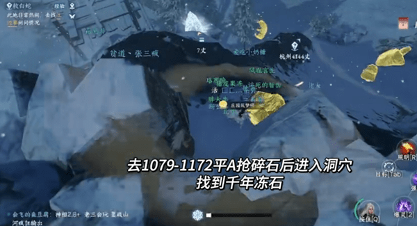 完了去坐标1076,1172的平安A抓碎石然后进山洞找千年冰石。