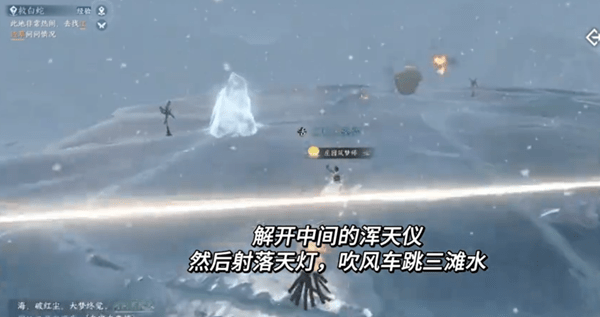 解开中间的浑天仪,击落天灯。当鼓风机跳入三个海滩时,您将获得一个宝箱。