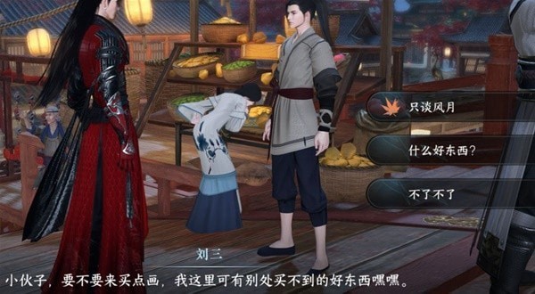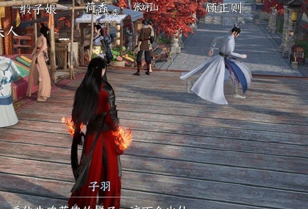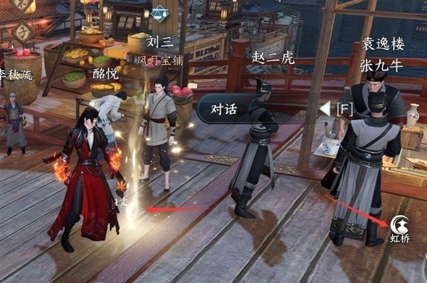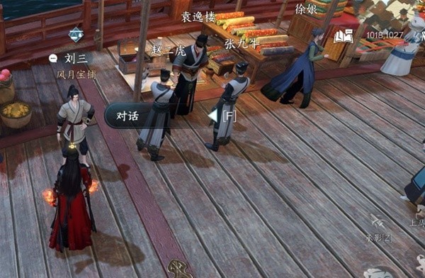 然后来到茶摊,邀请他喝茶(被宰),喝完茶继续对话,然后聚会就结束了,任务单的提示会变,然后去相应的地方,点击就可以被跟踪了。