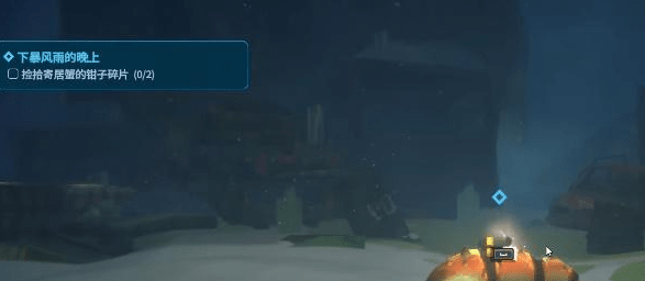 击败寄居蟹后,可以解锁一个新任务,捡起寄居蟹的钳子碎片(0/2)。