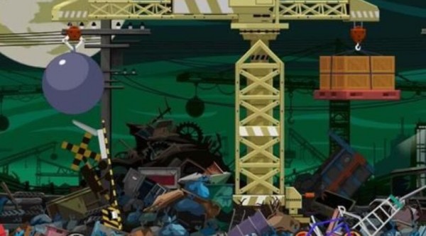 12.然后转动踏板,将自行车向右移动,启动吊车,换上铁球,打开梯子,将铁球向上放下,改写命运。