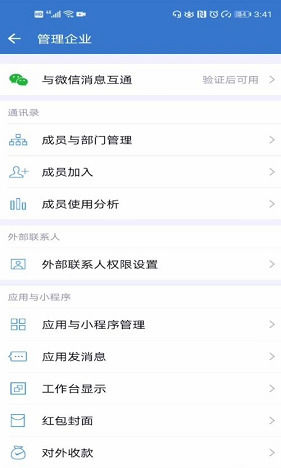 跳转至管理企业界面,一键与微信互通消息。