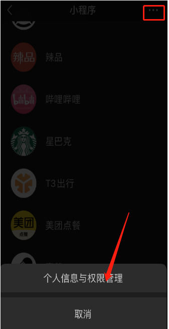 第二:点击上面三个点,选择【个人信息和权限管理】。