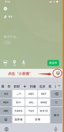 3. 然后您将进入编辑页面。可以看到键盘右侧会有一个表情按钮。点击搜索表情;