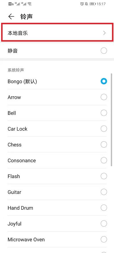 5.然后进入修改界面,点击【本地音乐】进入并选择您要设置的铃声。