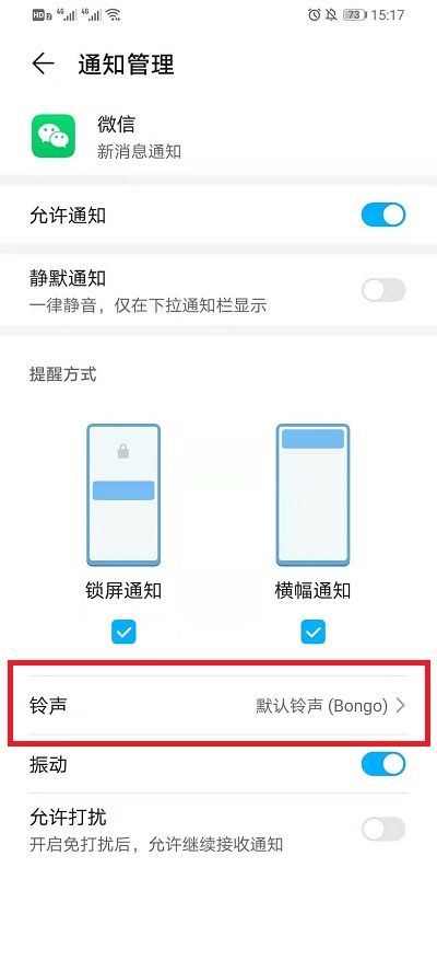 4、然后在通知管理界面点击下方的【铃声】;