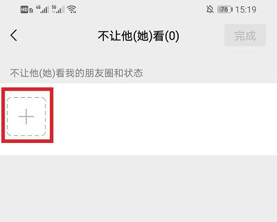 5、在功能界面中,我们需要点击【+】进入好友选择界面。如果我们不想让所有好友都看到,我们需要将所有人都添加到这个功能中;
