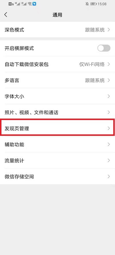 4、在【常规】界面,点击中间的【发现页面管理】,进入该界面;