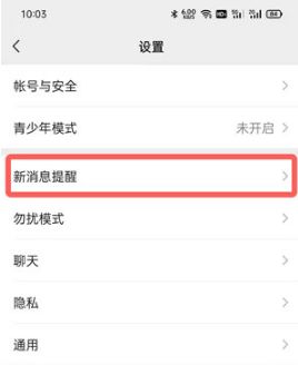 2.点击设置界面的【新消息提醒】;