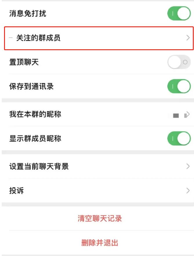 2. 然后您可以看到【关注的群组成员】。如果您正在关注群组成员,您将在此处看到他们。如果没有群成员,可以添加;