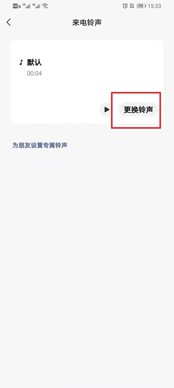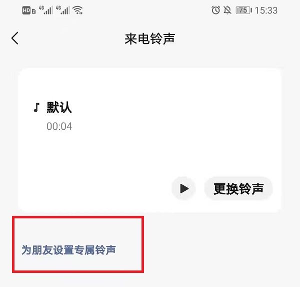 4、在来电铃声设置功能界面中,点击左下角的【为好友设置专属铃声】,进入好友选择界面。选择好友后,您可以选择铃声。