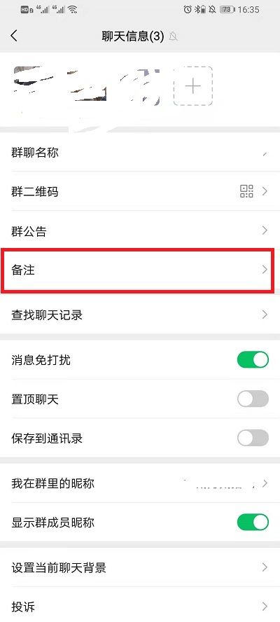 2、然后在群聊详细信息界面,点击备注进行备注;