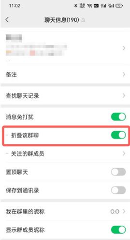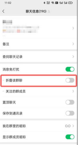 5、当折叠群聊功能右侧按钮变成灰色时,可以取消折叠群聊。