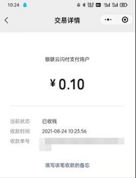 5、支付完成后,商户查看到的支付信息为“银联云闪付支付用户”。