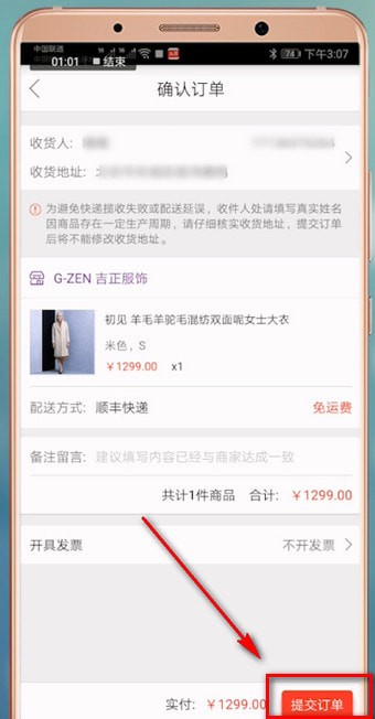2.然后添加您的收货地址,点击右下角【提交订单】,进入【在线支付】页面。