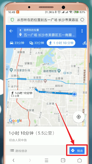 点击右下角的【预览】按钮,还可以看到详细的路线。小伙伴们,根据自己的实际情况选择相应的交通工具即可。到