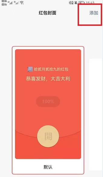 3、在红包封面功能页面,点击顶部【添加】,进入添加微信红包封面界面;