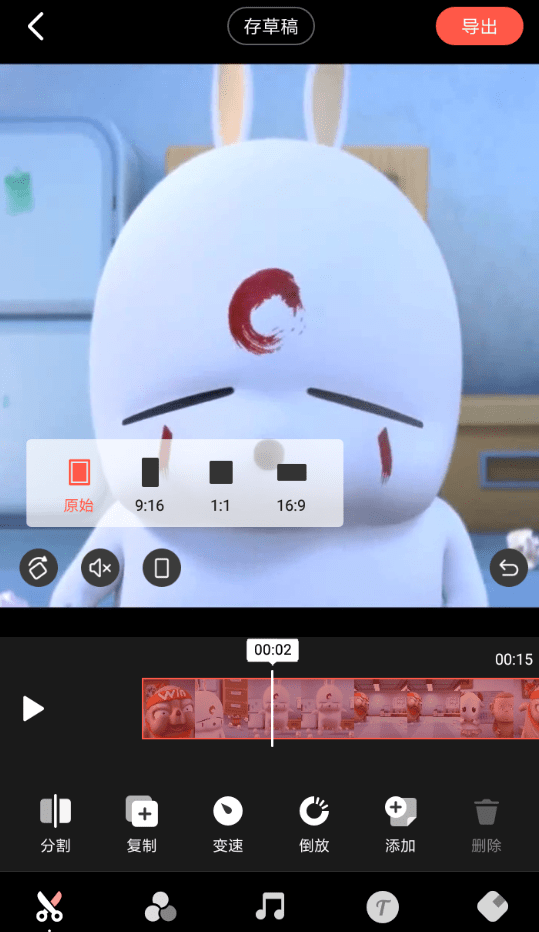 2、成功导入手机本地素材文件后,用户可以在编辑界面中直接找到切换视频尺寸的功能(如下图)。到