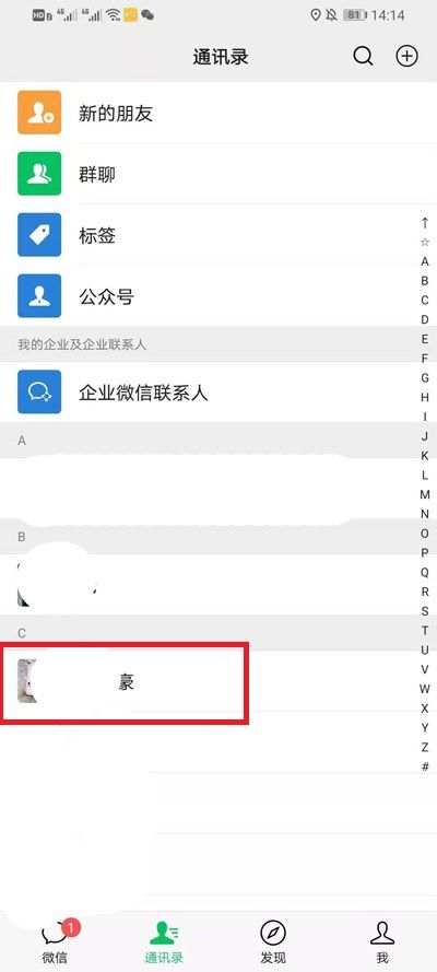 2、在【通讯录】中找到我们要查看的微信好友,点击进入微信好友信息界面;