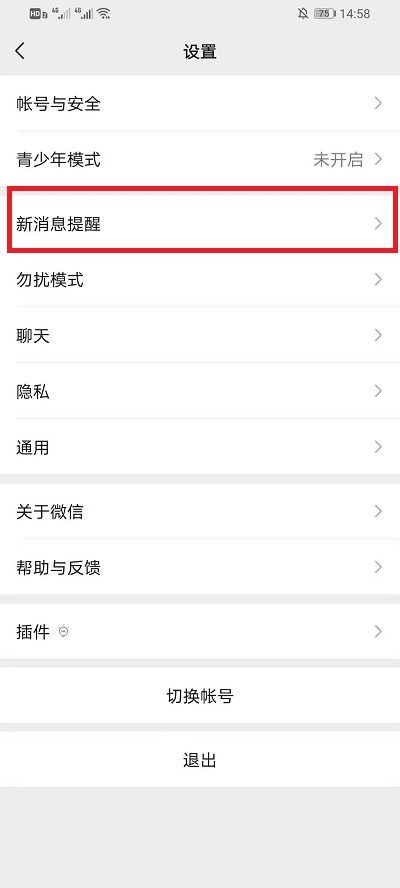 3、点击【设置】界面中的【新消息提醒】进入界面;