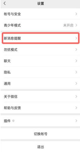 2、点击【设置】进入后,选择【新消息通知】设置;