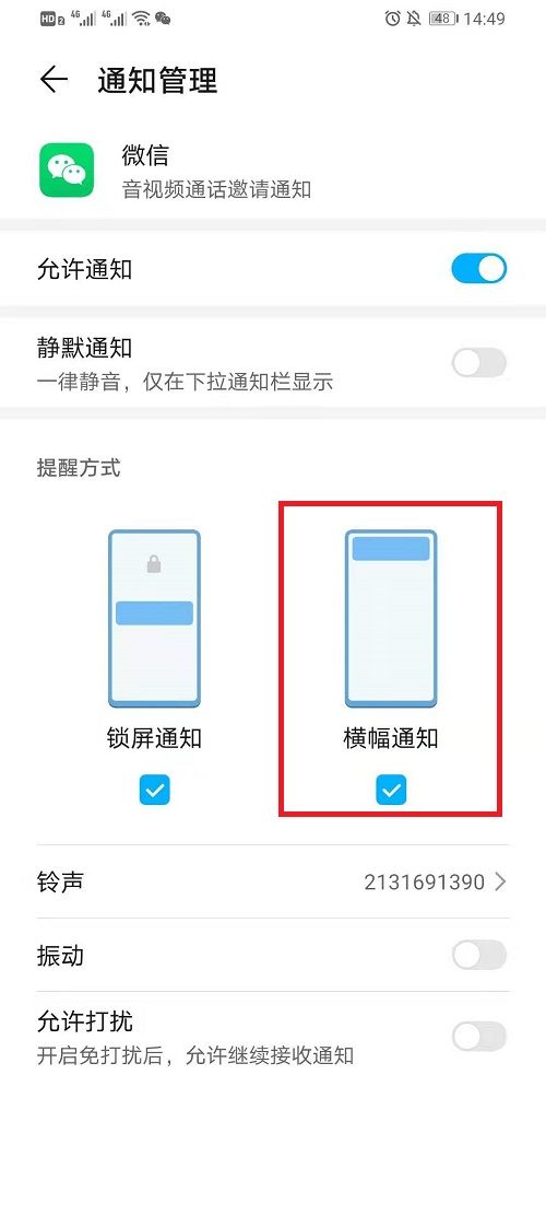 4. 然后点击【横幅通知】。只需打开横幅通知即可完成设置,这样我们接听微信电话时就可以不那么唐突了。