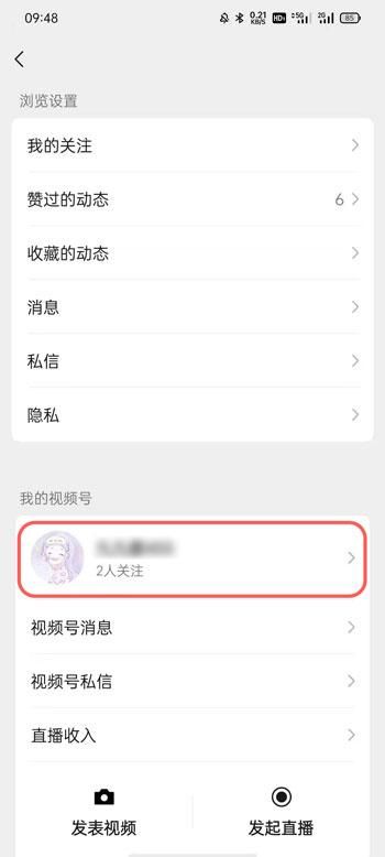 3、找到下方“我的视频账号”的【头像】,点击视频账号账号头像;