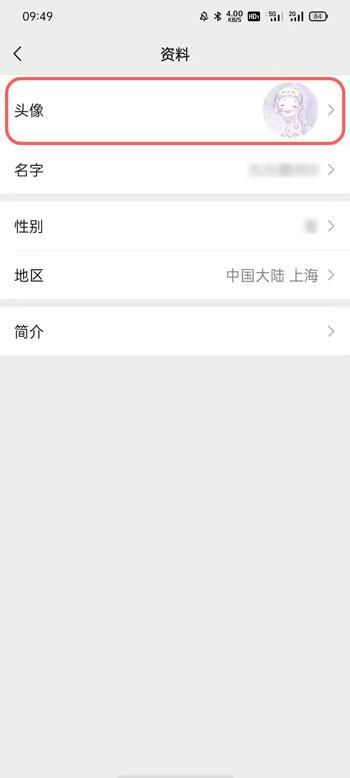 5、继续点击上方【头像】选项,进入个人信息设置。注意不要点击头像图片,否则会看到放大的头像;