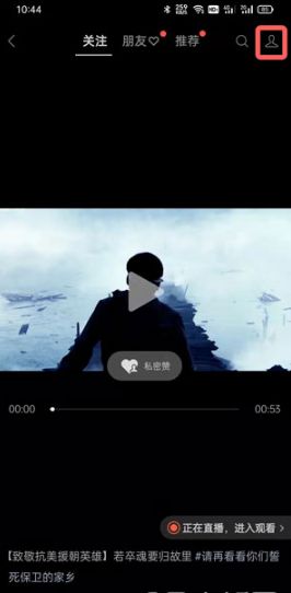2、打开视频账号,然后点击首页右上角的【头像图标】;