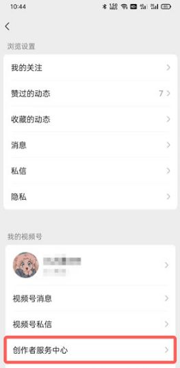 3、在设置中找到并点击下方的【创作者服务中心】;
