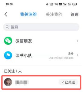 3.在关注列表中选择您要查看阅读记录的好友,点击进入对方主页;
