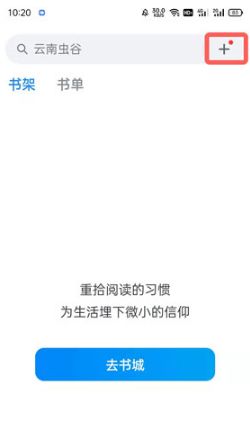 2、然后在书架右上角,点击搜索框右侧的【+】按钮;