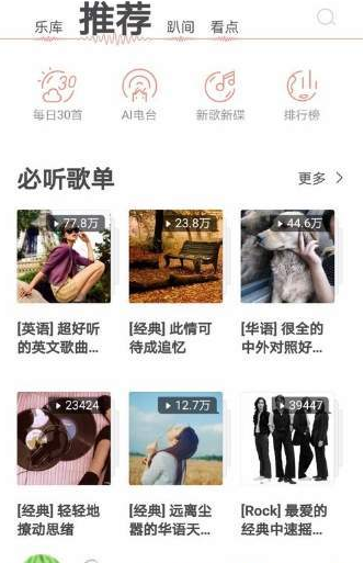 打开并登录虾米音乐后,系统会进入推荐界面,您可以在其中选择自己喜欢的歌曲来听。点击个人中心功能进入。