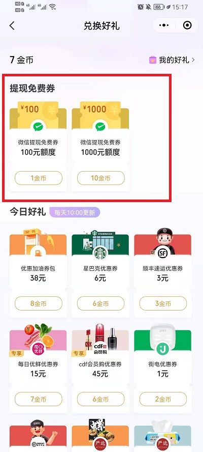 3、在兑换界面点击【兑换礼品】即可兑换、提取免费优惠券。