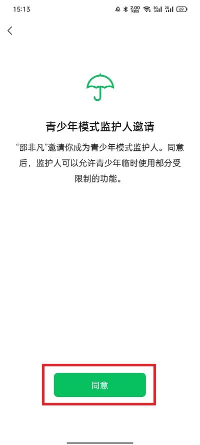 5、在邀请信息界面,监护人点击下方【同意】即可完成设置。