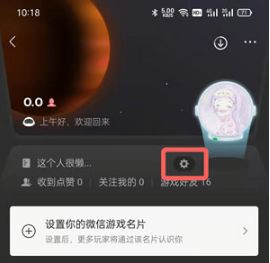 3、进入游戏个人主页设置后,点击头像旁边的齿轮【设置】;