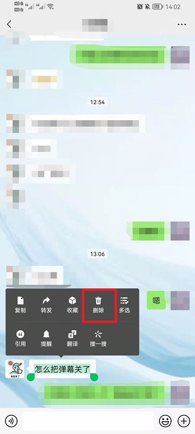 2.然后长按聊天就会出现删除。点击删除,聊天记录将被删除;