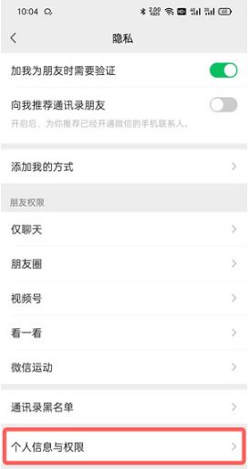 3、点击隐私设置底部的【个人信息与权限】;