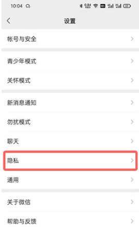 2.然后在微信设置中,点击【隐私】设置;