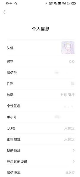 5.最后就可以看到微信账号信息的全部信息了。