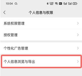 4. 选择【个人信息浏览并导出】设置;