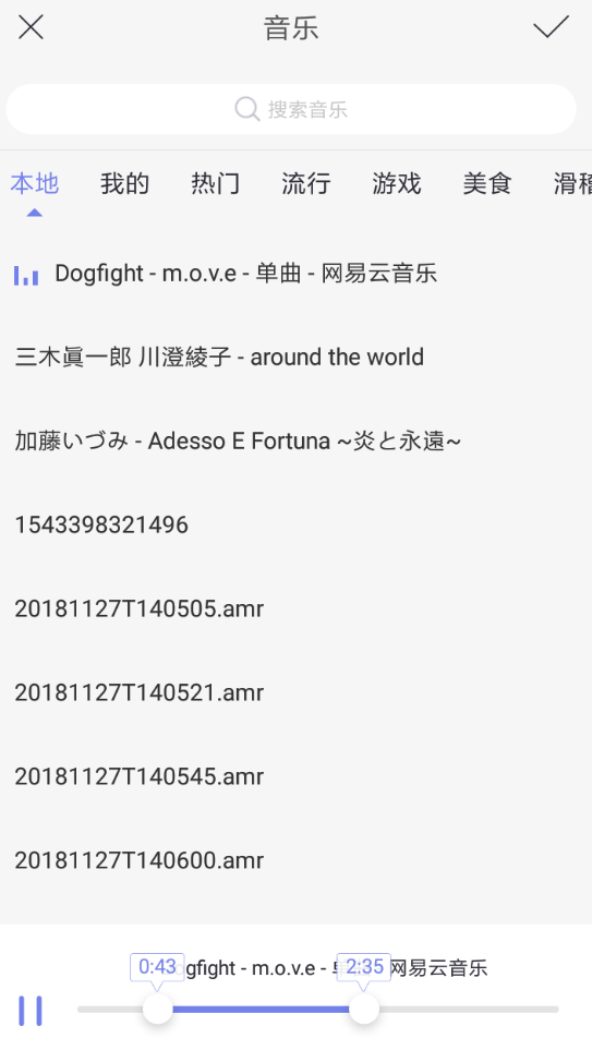 3.选择您需要的配乐后,您可以通过拖动底部的进度条来编辑歌曲的内容,非常方便快捷!
