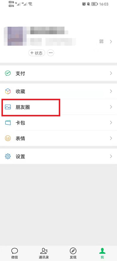 2、在我的界面,我们可以在中间看到【朋友圈】选项。我们点击进入这个功能界面;
