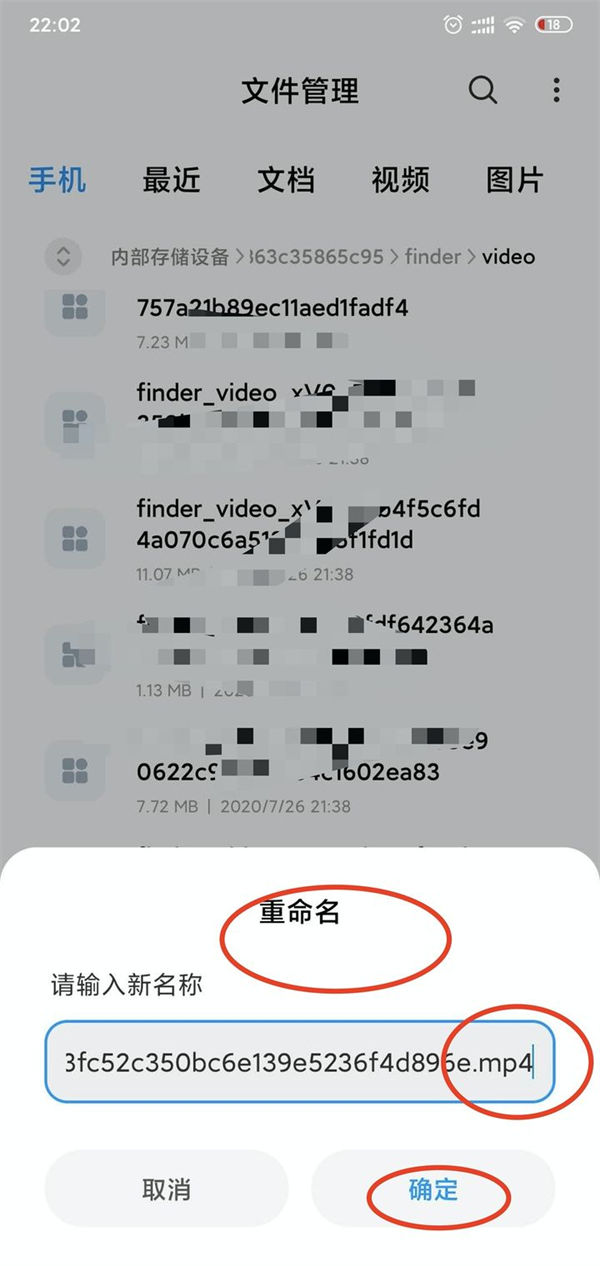 4. 选择缓存文件后,将文件重命名为mp4 格式。
