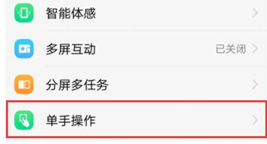 第二步:进入设置选项后,在设置界面找到【单手操作】并点击打开。到